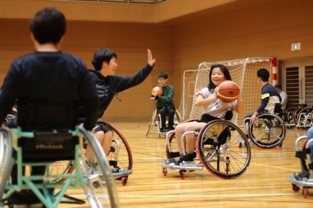 車いすバスケットボールを楽しむ